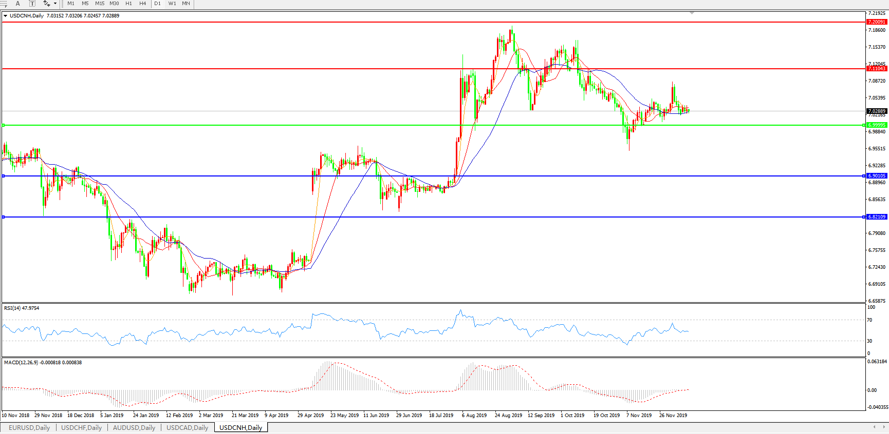 交易策略: 在7.0000之上,看涨,目标价位为7.1000,然后为7.2000。