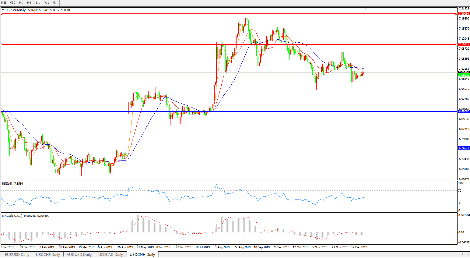 美元兑人民币USDCNH 日线图: