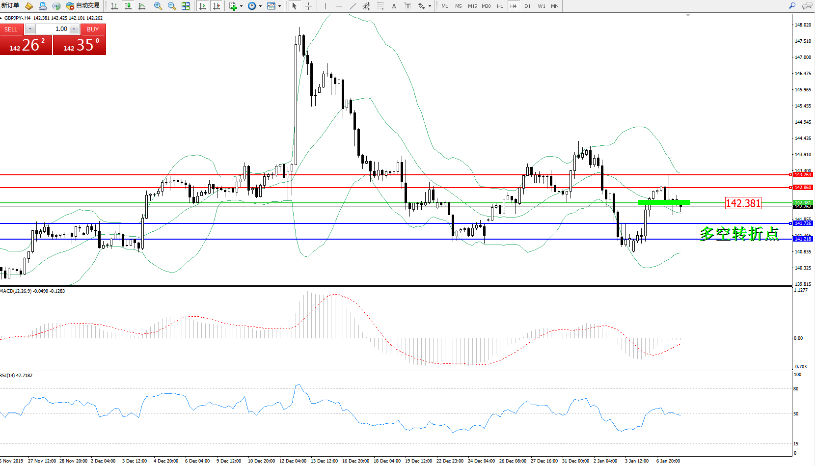 交易策略:142.381下方看跌,目标141.726141.218