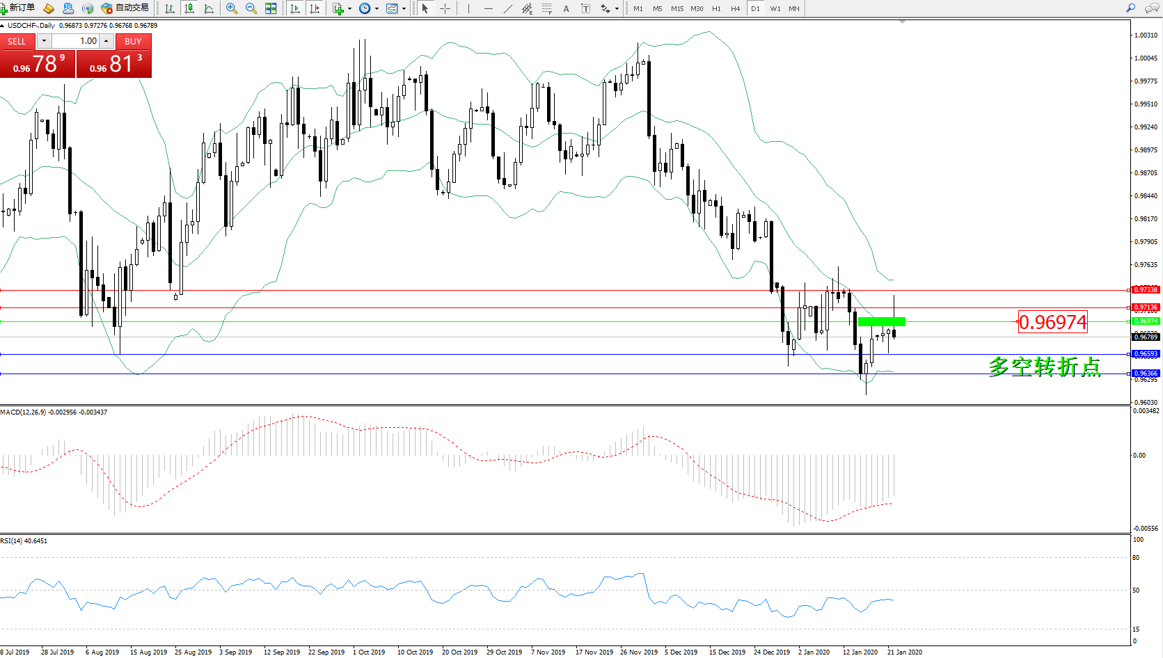 交易策略:0.96974下方看跌,目标0.965930.96366