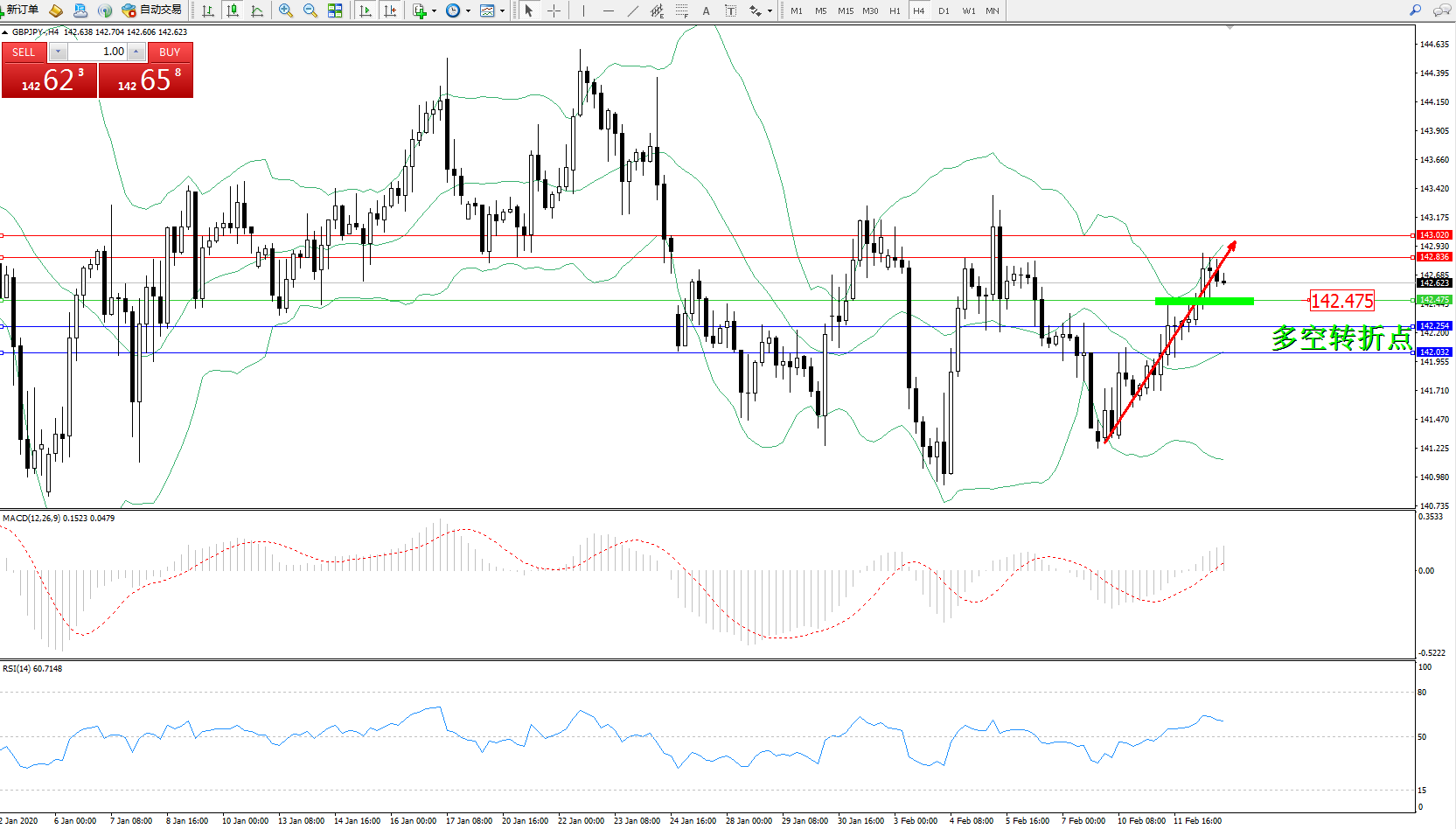 交易策略:142.475上方看涨,目标142.836143.020