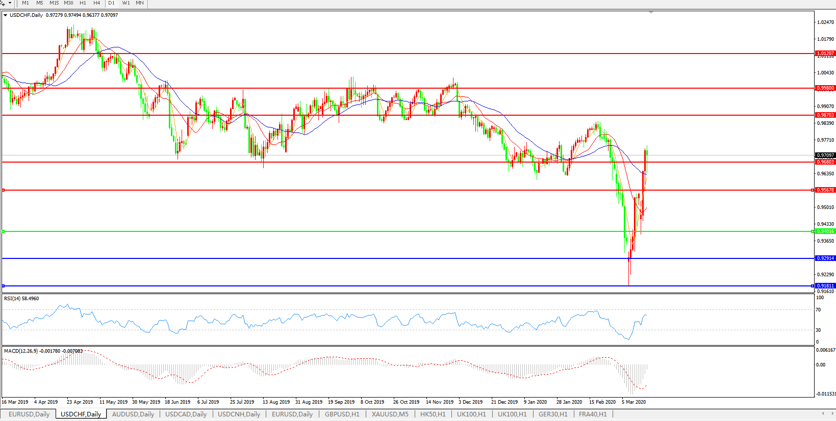 美元兑瑞郎USDCHF 日线图: