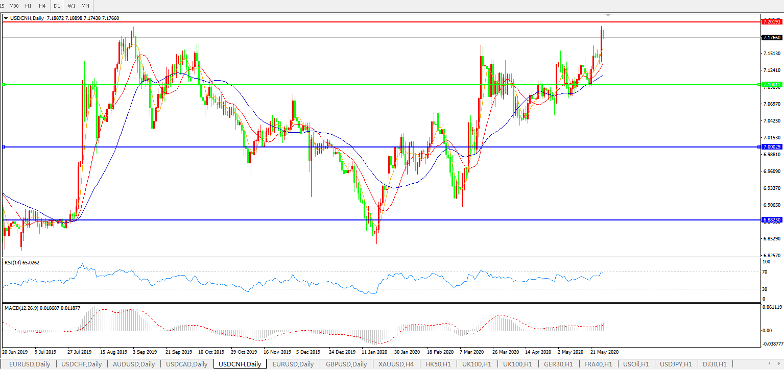 美元兑人民币USDCNH    日线图: