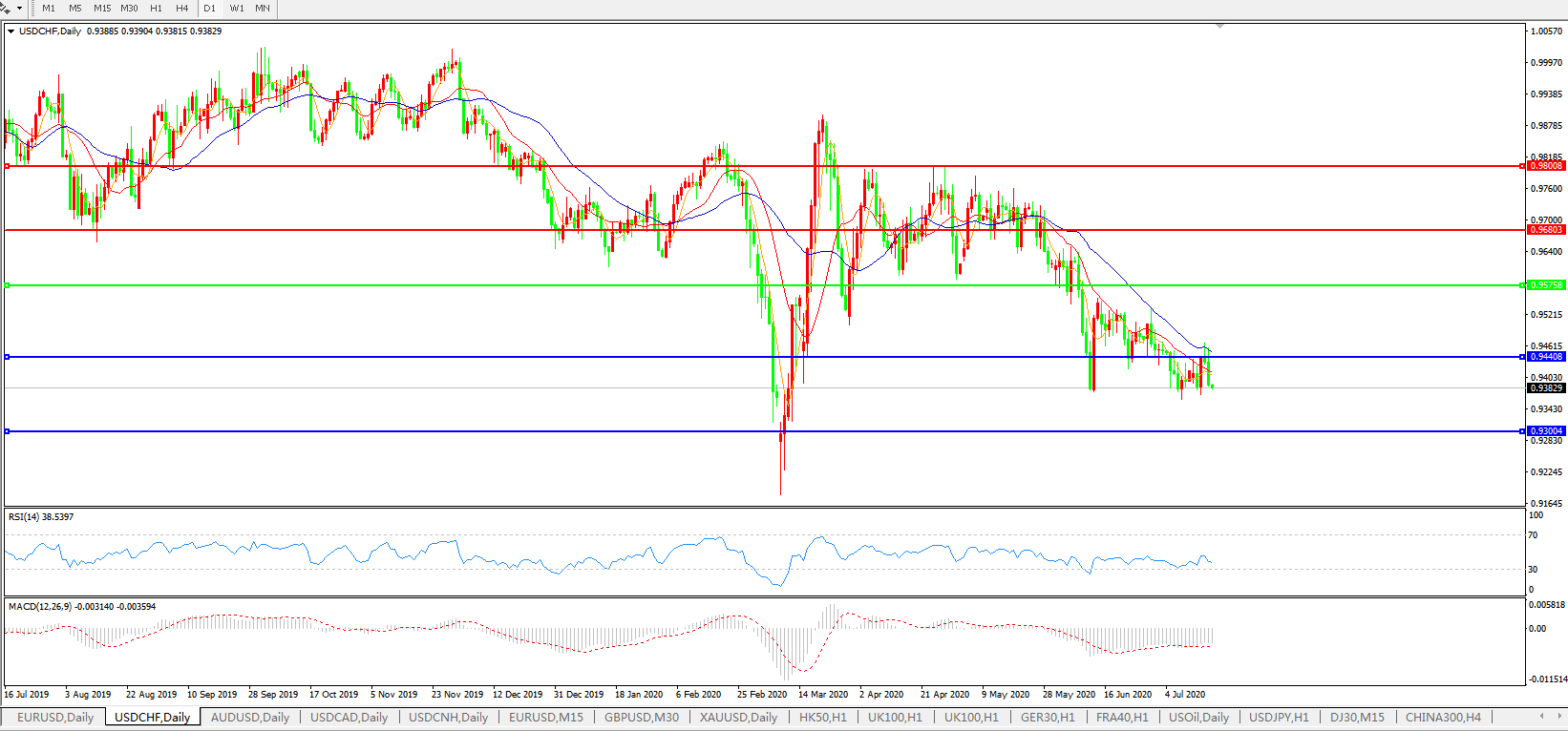 美元兑瑞郎USDCHF    日线图: