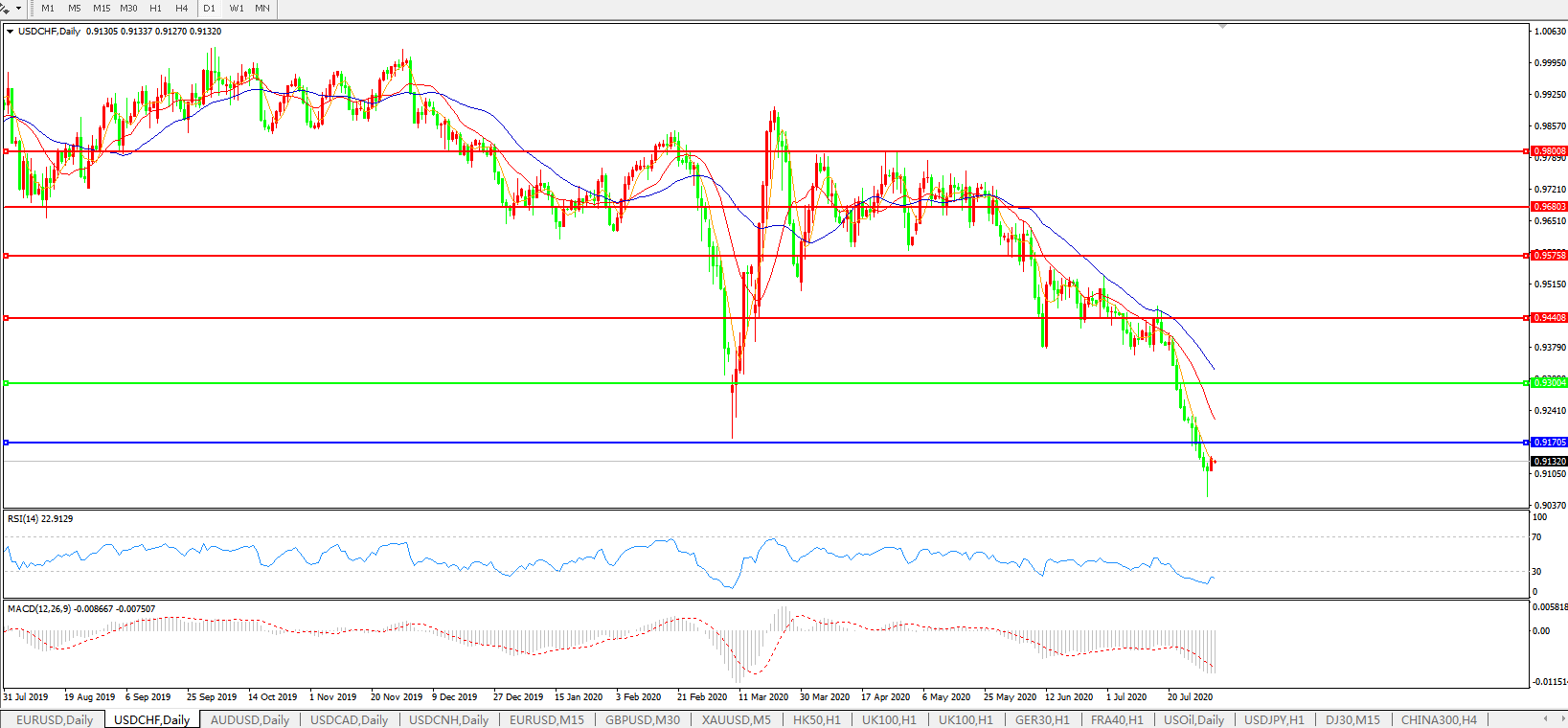 美元兑瑞郎USDCHF    日线图: