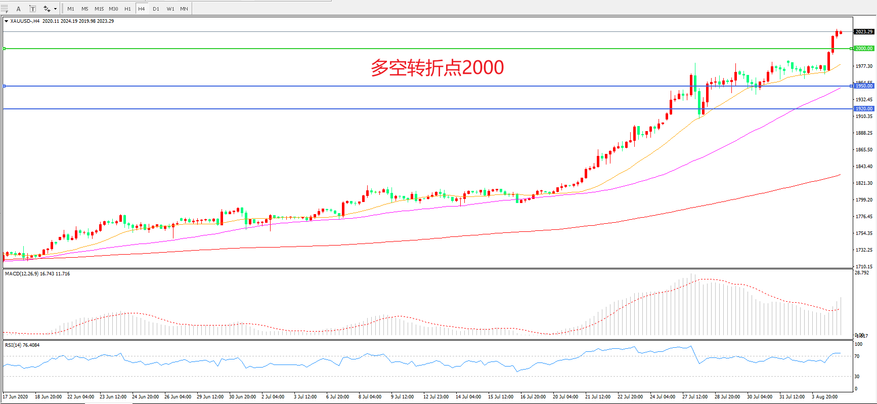 交易策略:在2000.00之上看涨,目标2030.00   2050.00