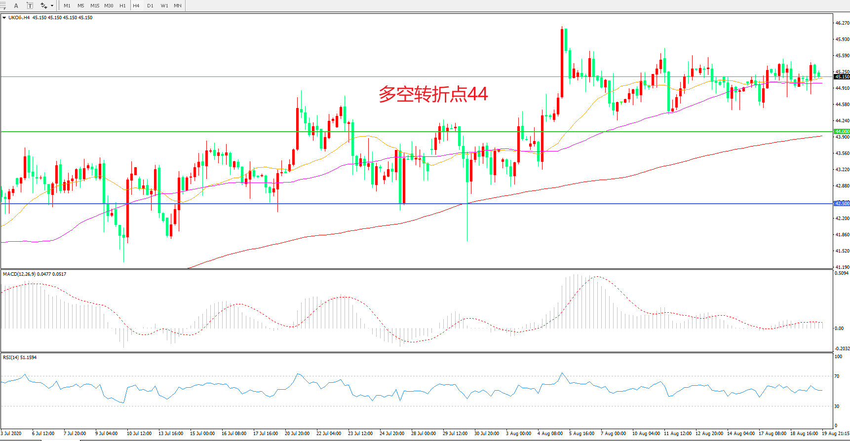 交易策略: 在44.00之上看涨,目标46.50 49.00