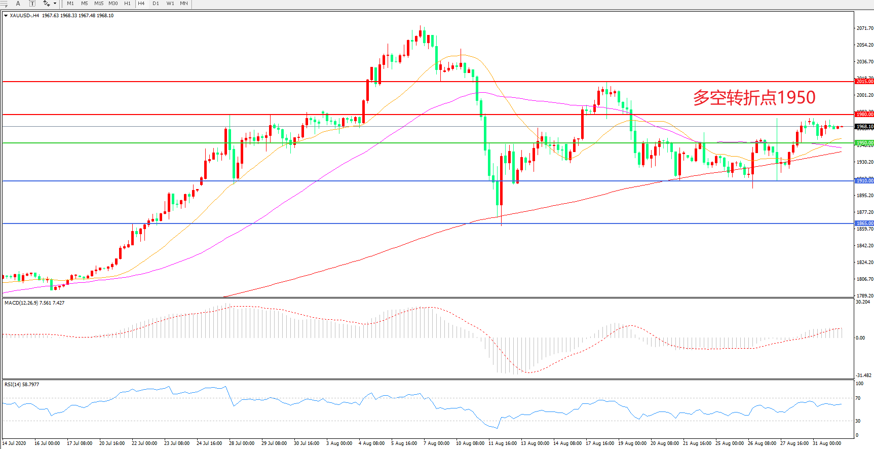 交易策略:在1950.00之上看涨,目标1980.00   2015.00
