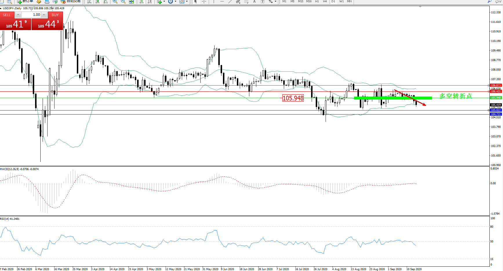 多空转折点:105.948