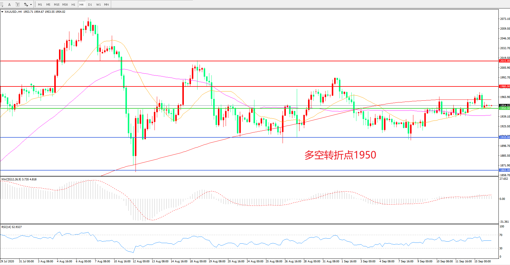 多空转折点:1950.00