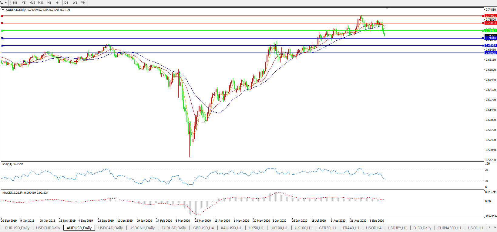 澳元兑美元AUDUSD 日线图: