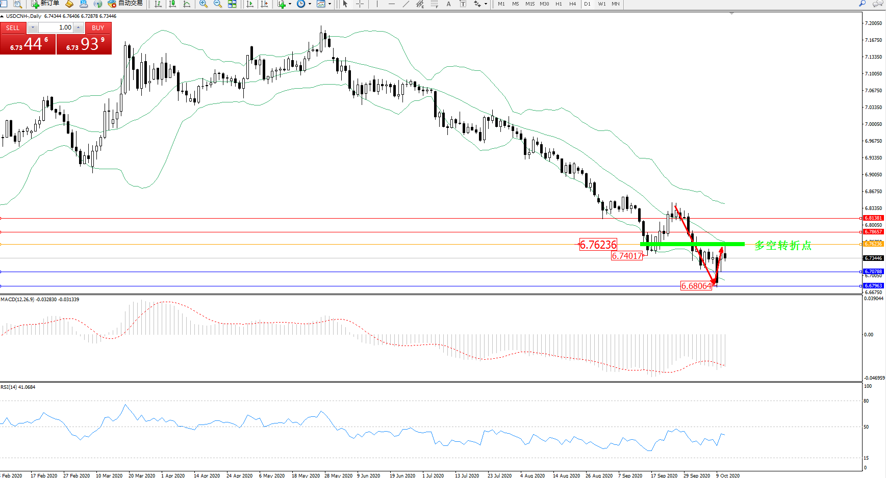 交易策略:6.76236下方看跌,目标6.70788、6.67963