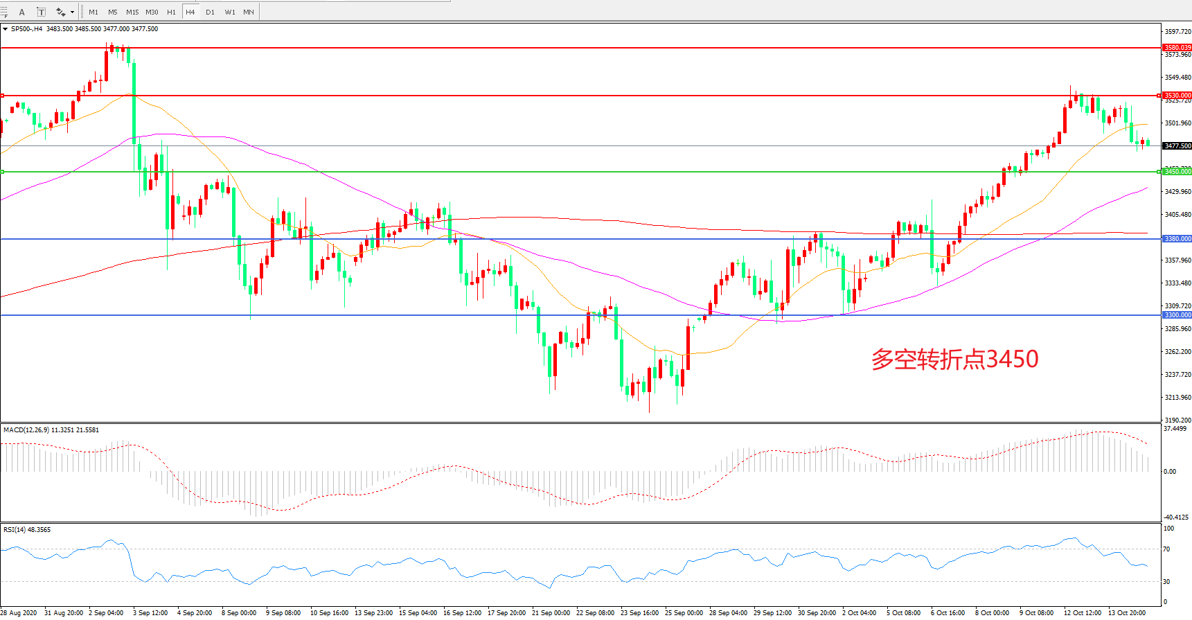 周三(10月14日),美国财长姆努钦表示,在11月大选前,难以达成有关财政刺激的协议,美股闻讯大跌,标普500震荡下行,11大板块中仅三个板块上周,最终收报3483.25点。大型科技股中,亚马逊和奈飞跌超2%,Facebook跌超1%,热门中概股多数下跌。