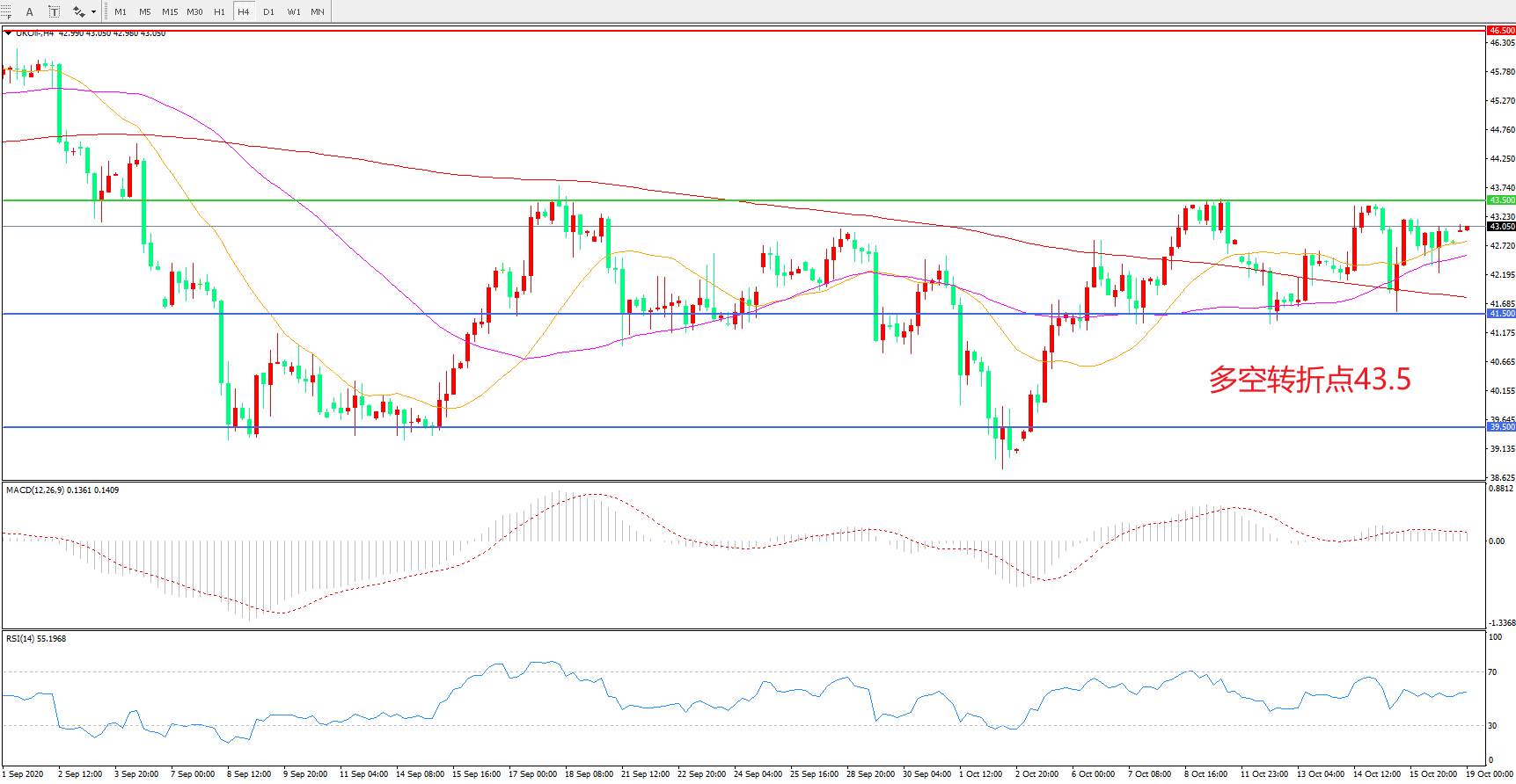 多空转折点:43.50