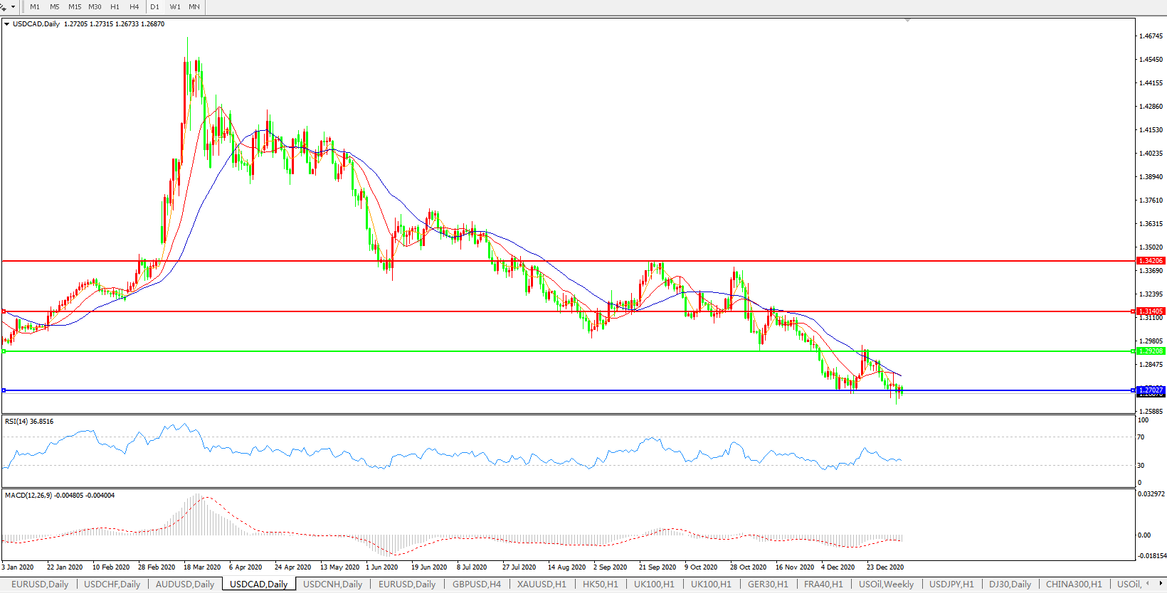 美元兑加元USDCAD    日线图: