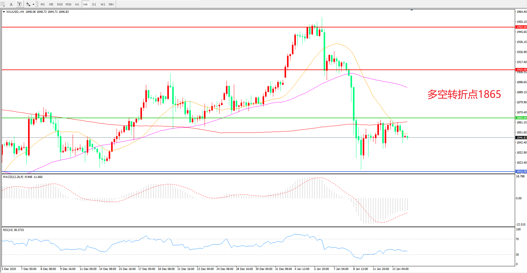 交易策略:在1865.00之下看跌,目标1815.00   1765.00