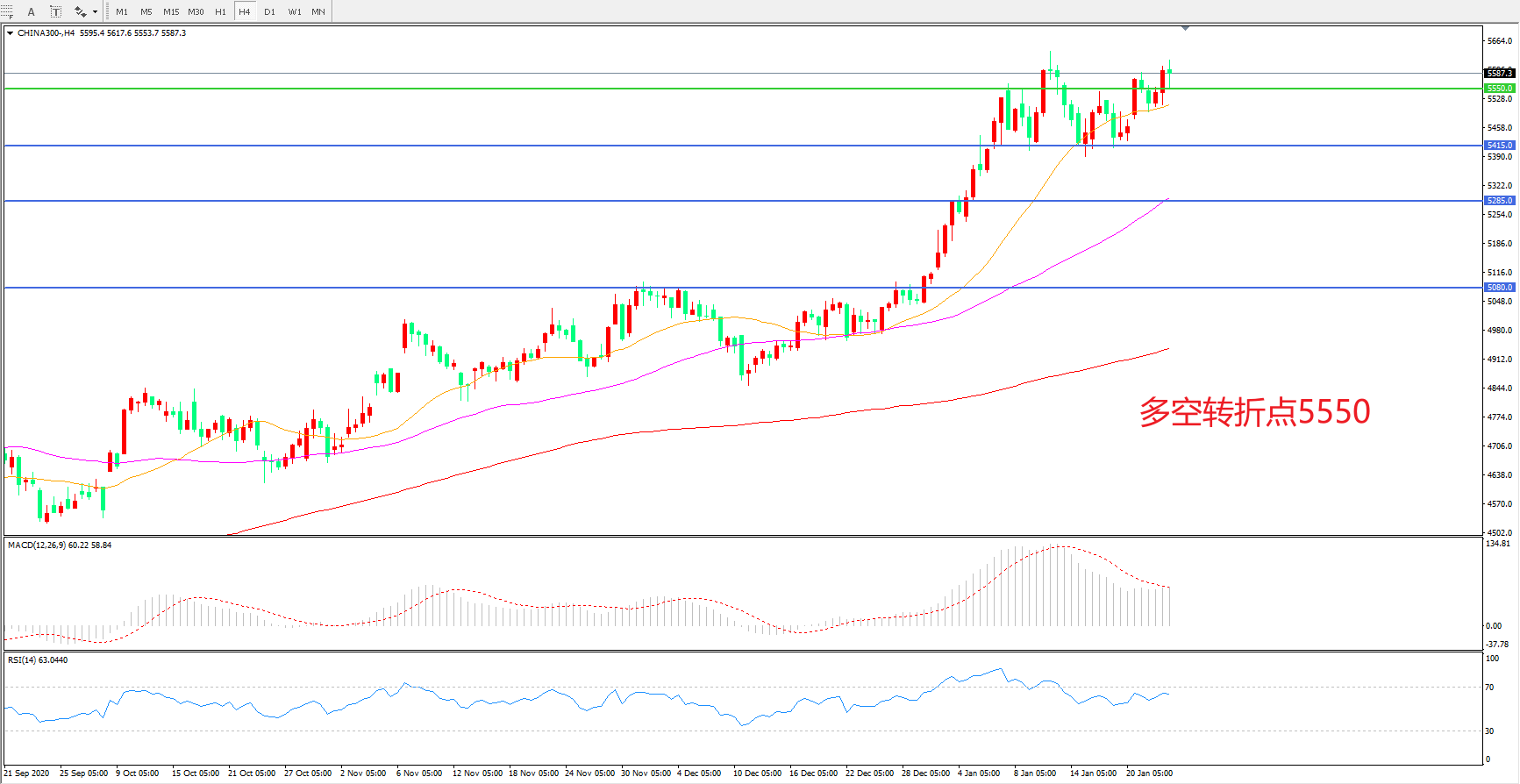 多空转折点:5550.00