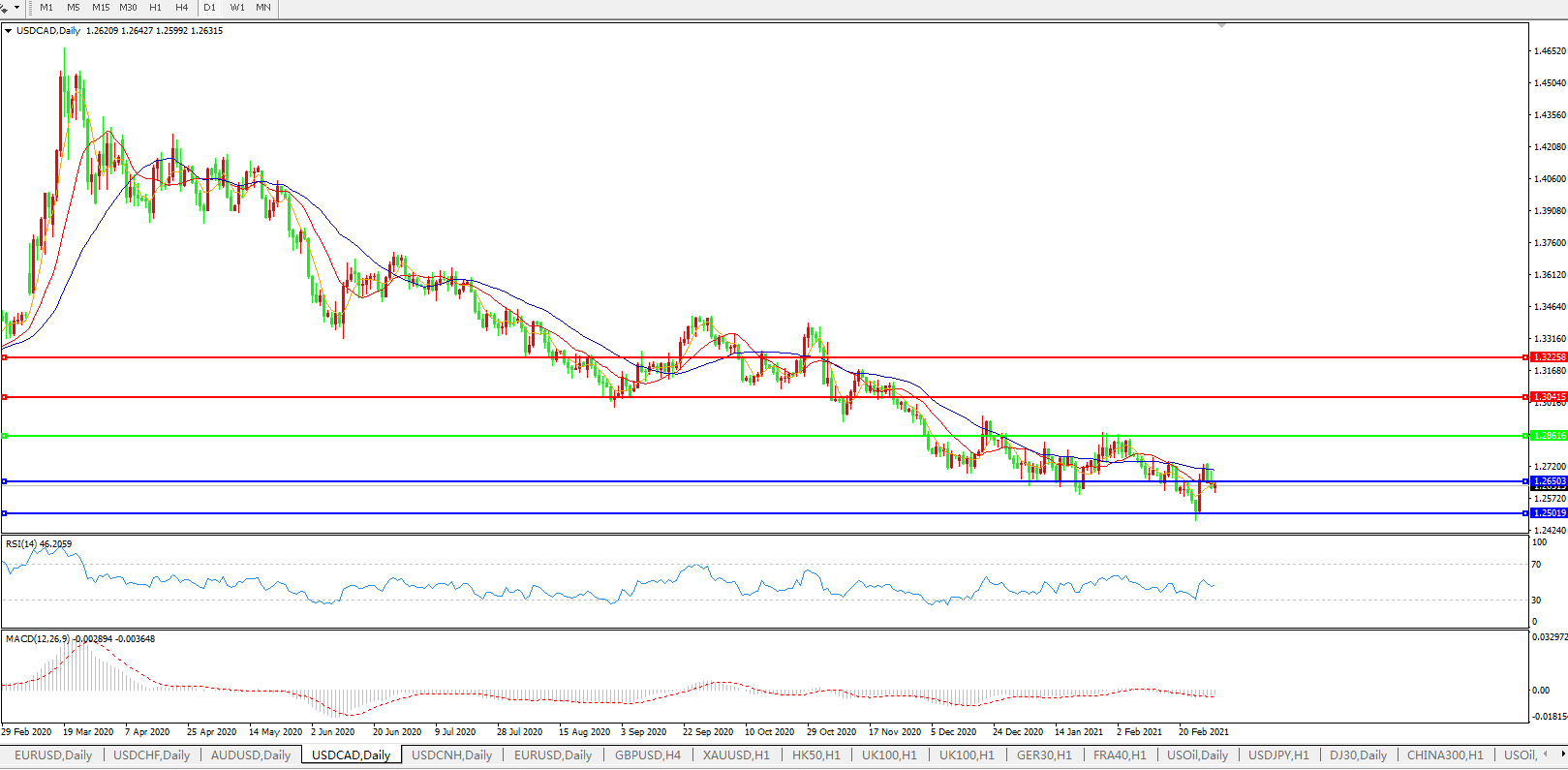 美元兑加元USDCAD 日线图: