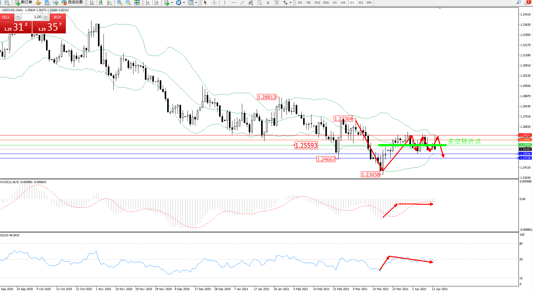 交易策略:1.25593下方看跌,目标1.25016、1.24728