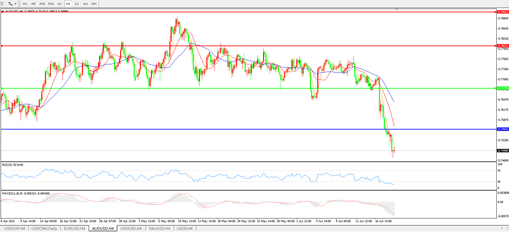 AUDUSD    4小时图: