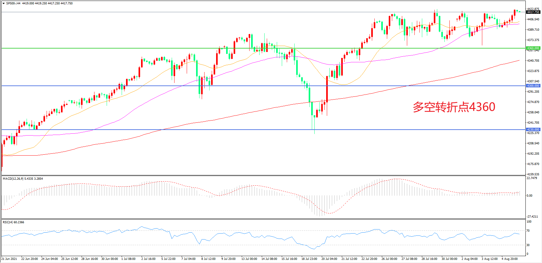 多空转折点:4360.00