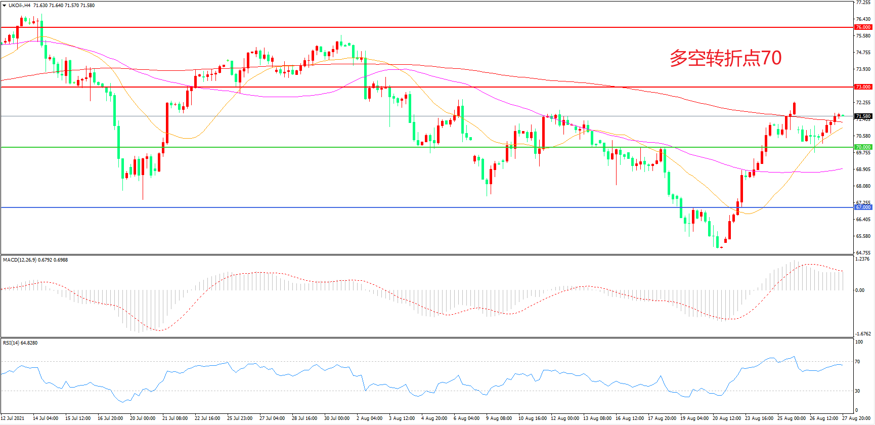 交易策略:在70.00之上看涨,目标73.00                76.00