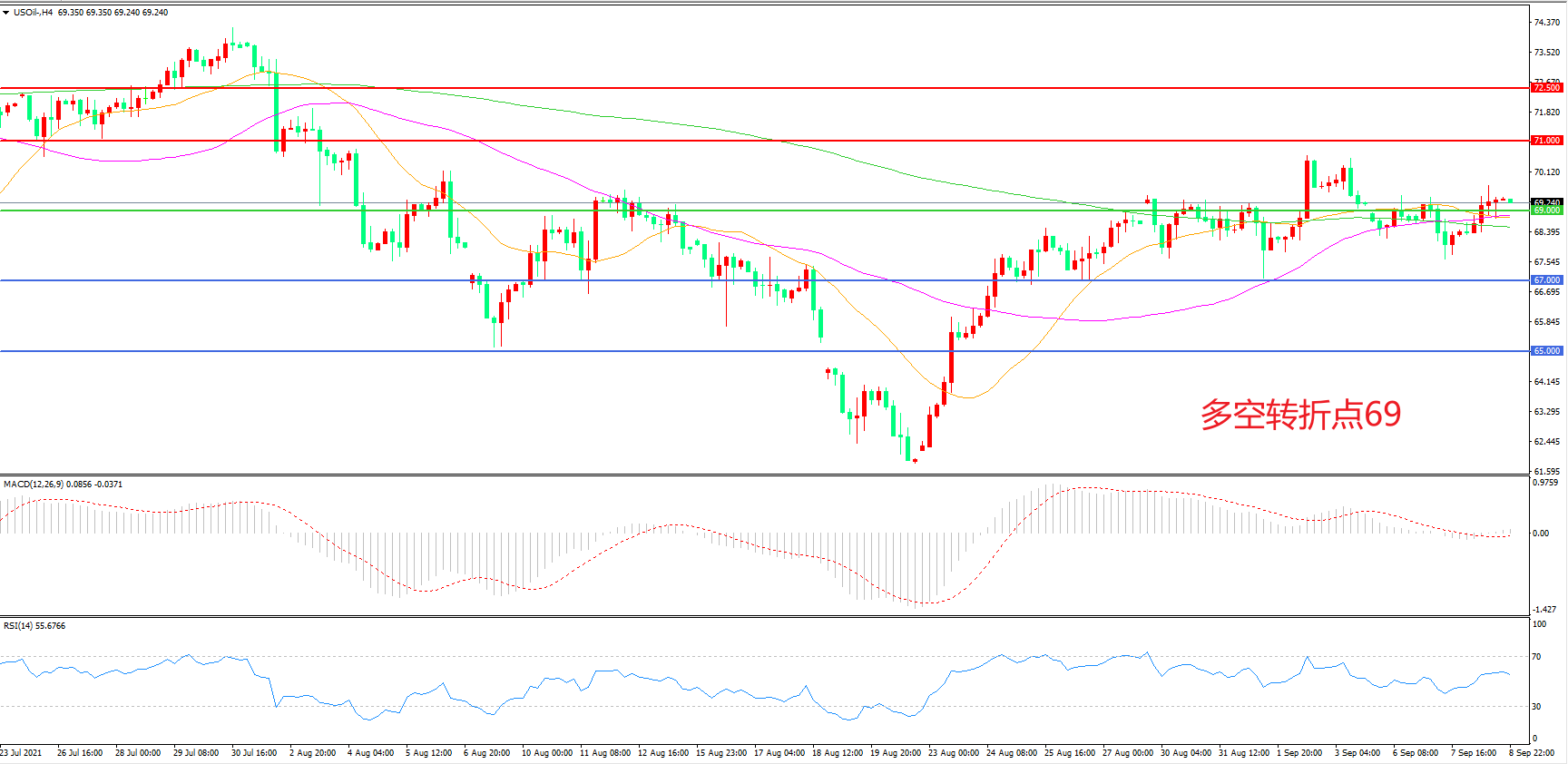 多空转折点:69.00