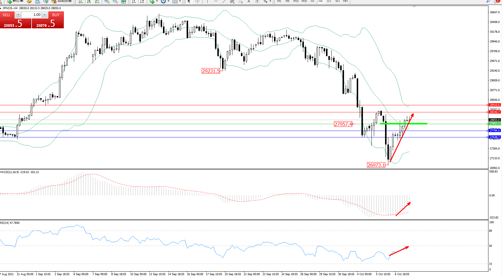 日经指数JPN225——4小时K线图显示: