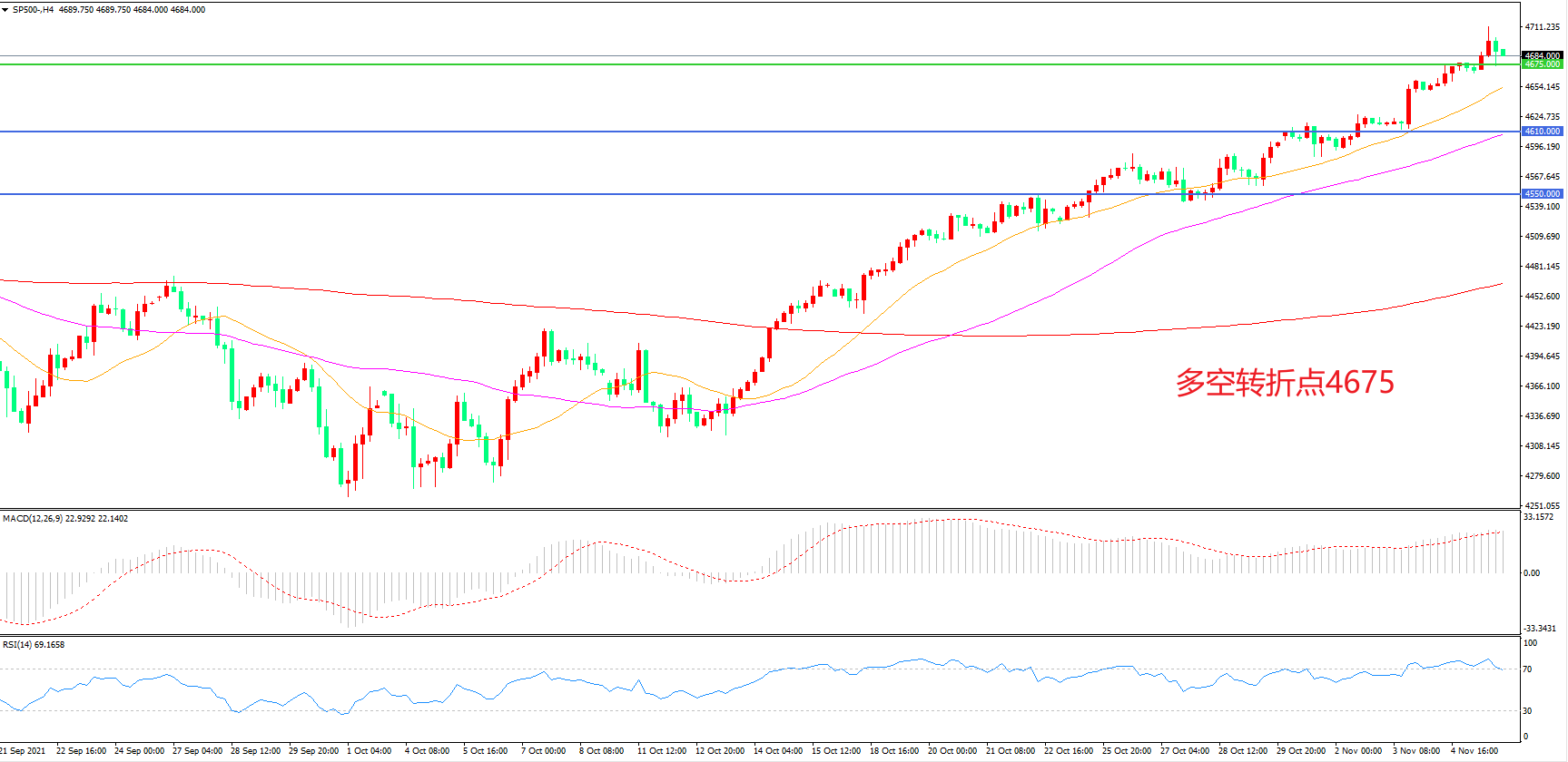 4小时图看,标普500以均线系统为依托连续拉升,短期表现偏强,MACD红柱增加,RSI指标走平,日内延续上行概率较大。