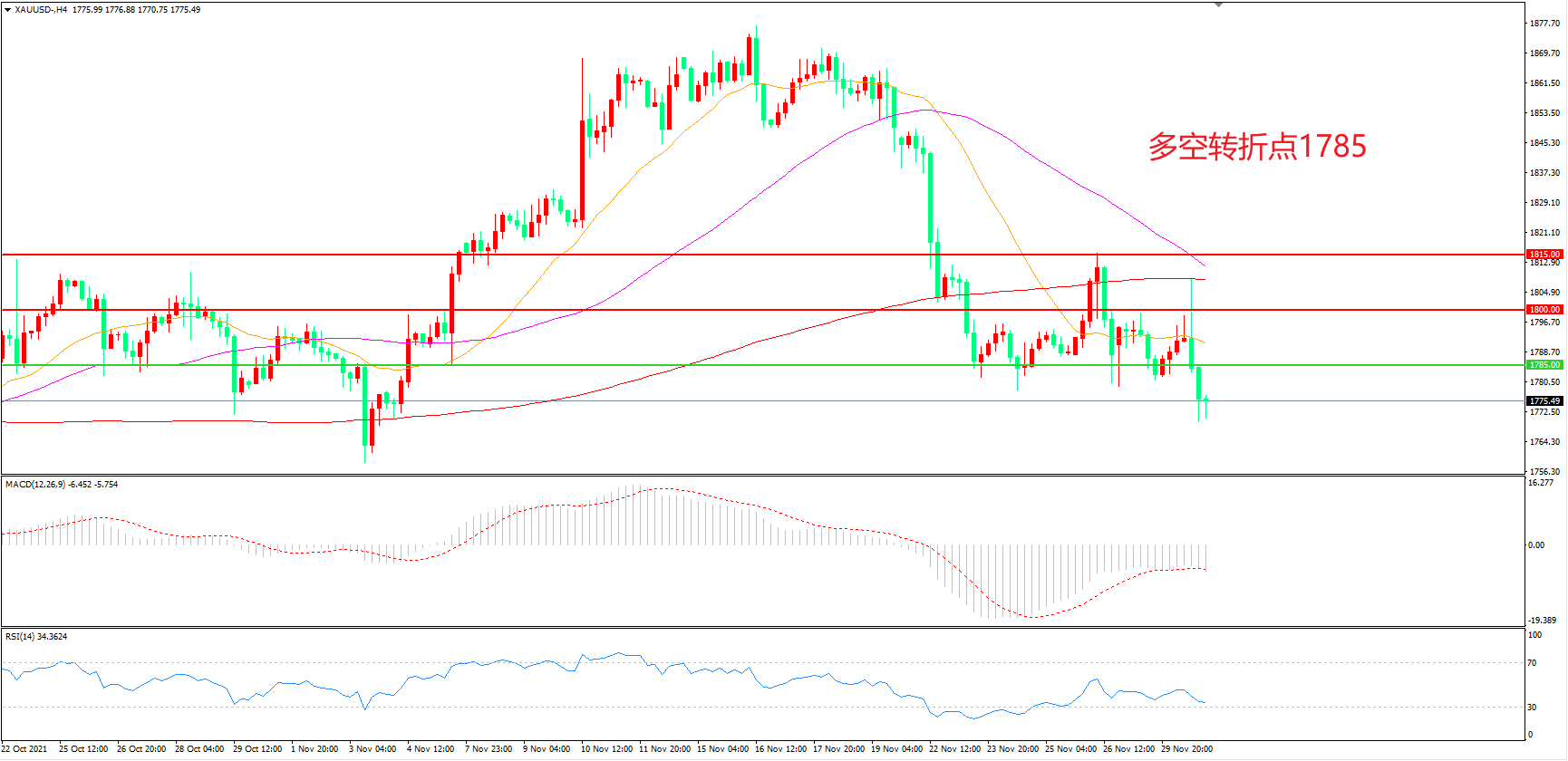 多空转折点:1785.00