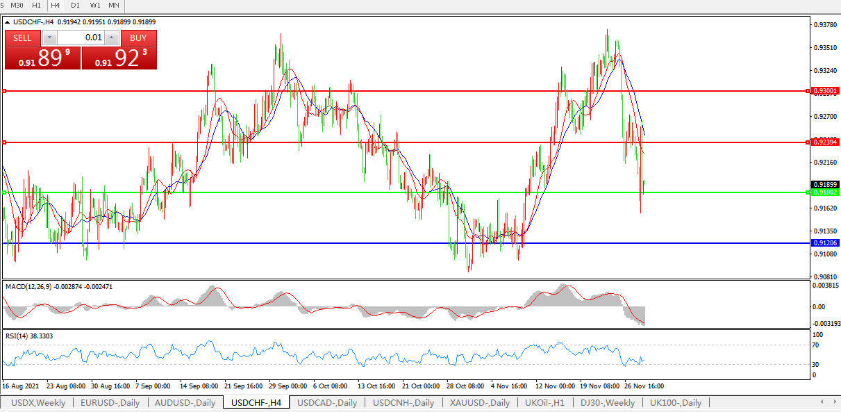 美元兑瑞郎USDCHF 4小时图: