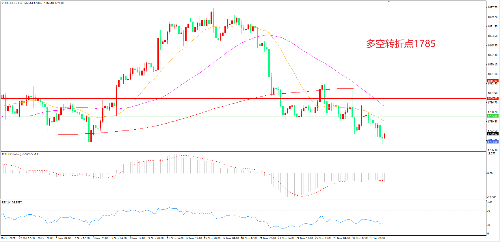 交易策略:在1785.00之下看跌,目标1763.00 1750.00