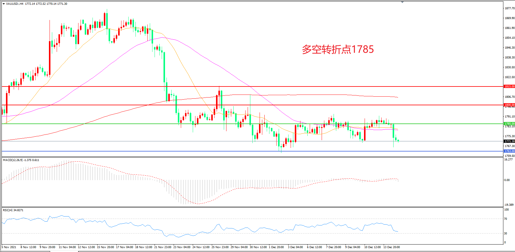 交易策略:在1785.00之下看跌,目标1763.00 1750.00