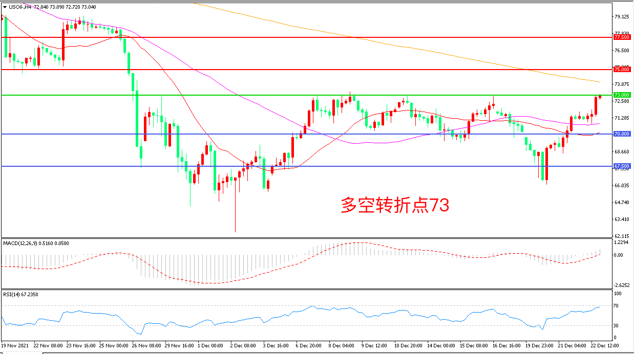 交易策略:在73.00之上看涨,目标75.00        77.50