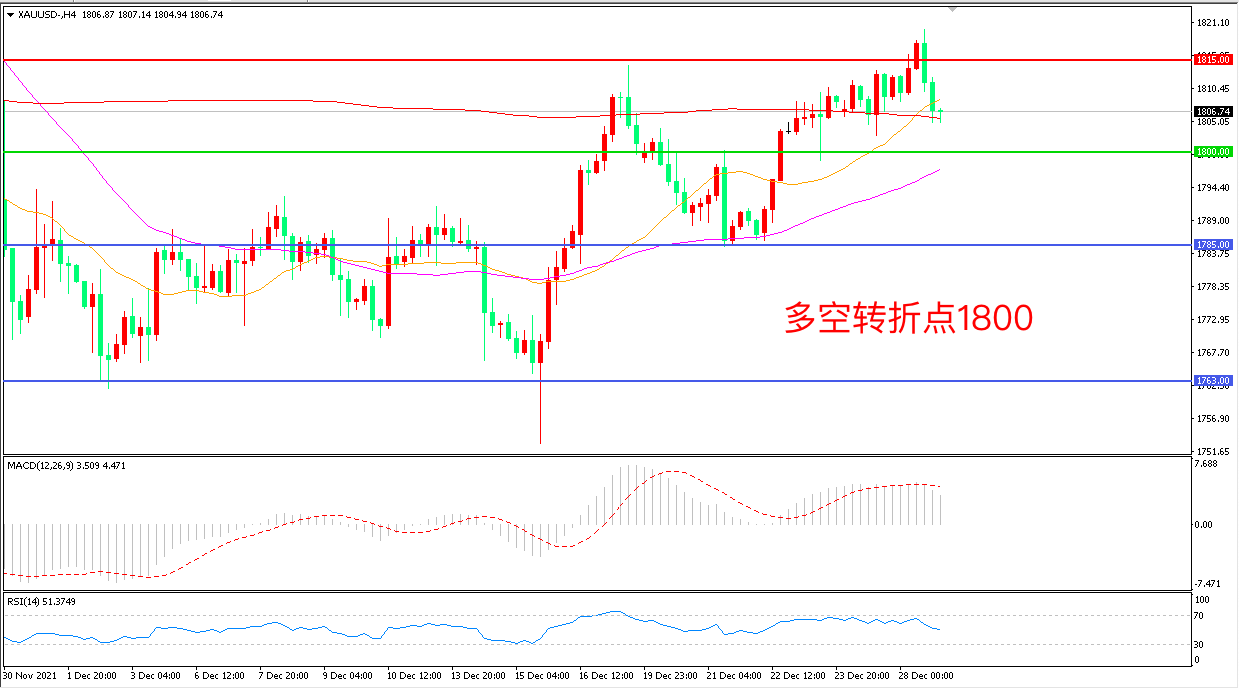 交易策略:在1800.00之上看涨,目标1815.00 1830.00