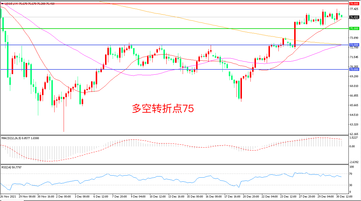 交易策略:在75.00之上看涨,目标78.00 80.00