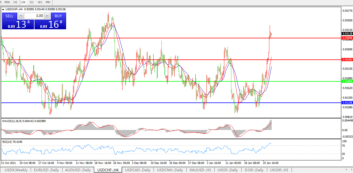 美元兑瑞郎USDCHF    4小时图: