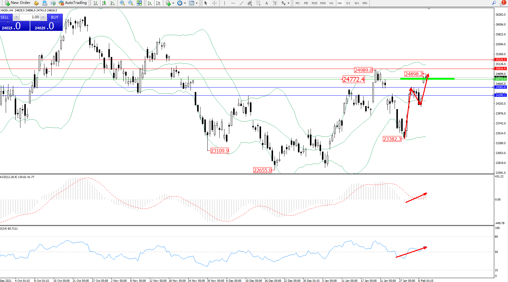 恒指HK50 ——4小时K线图显示:
