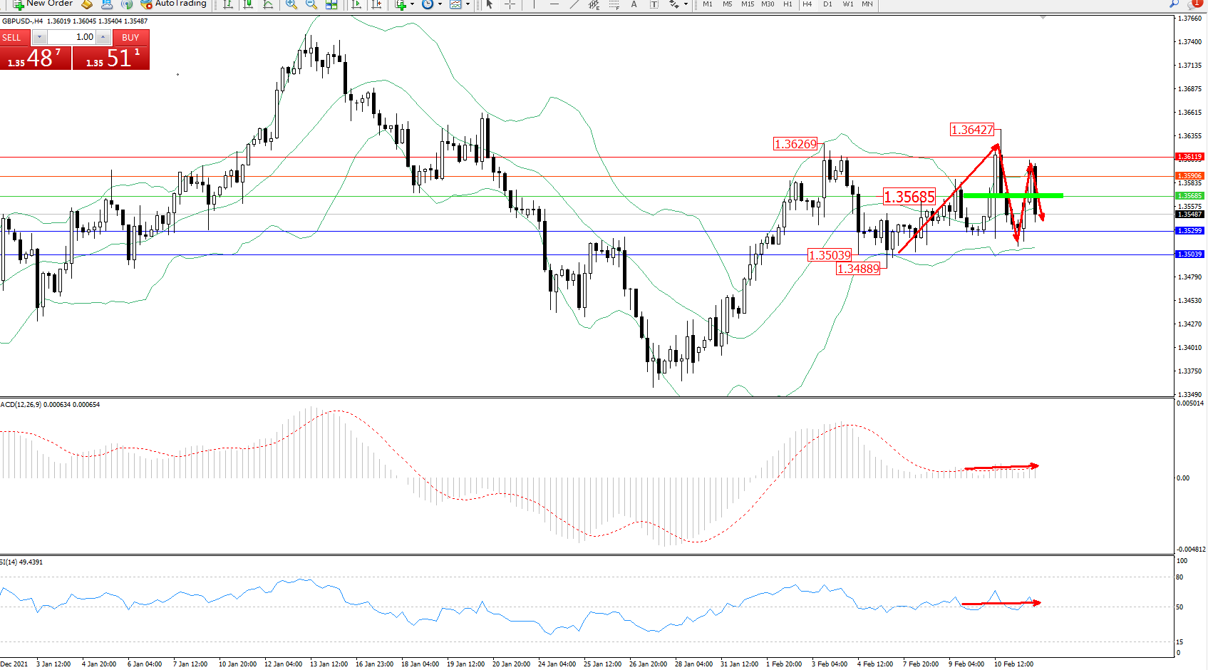 交易策略:1.35685下方看跌,目标1.35299、1.35039
