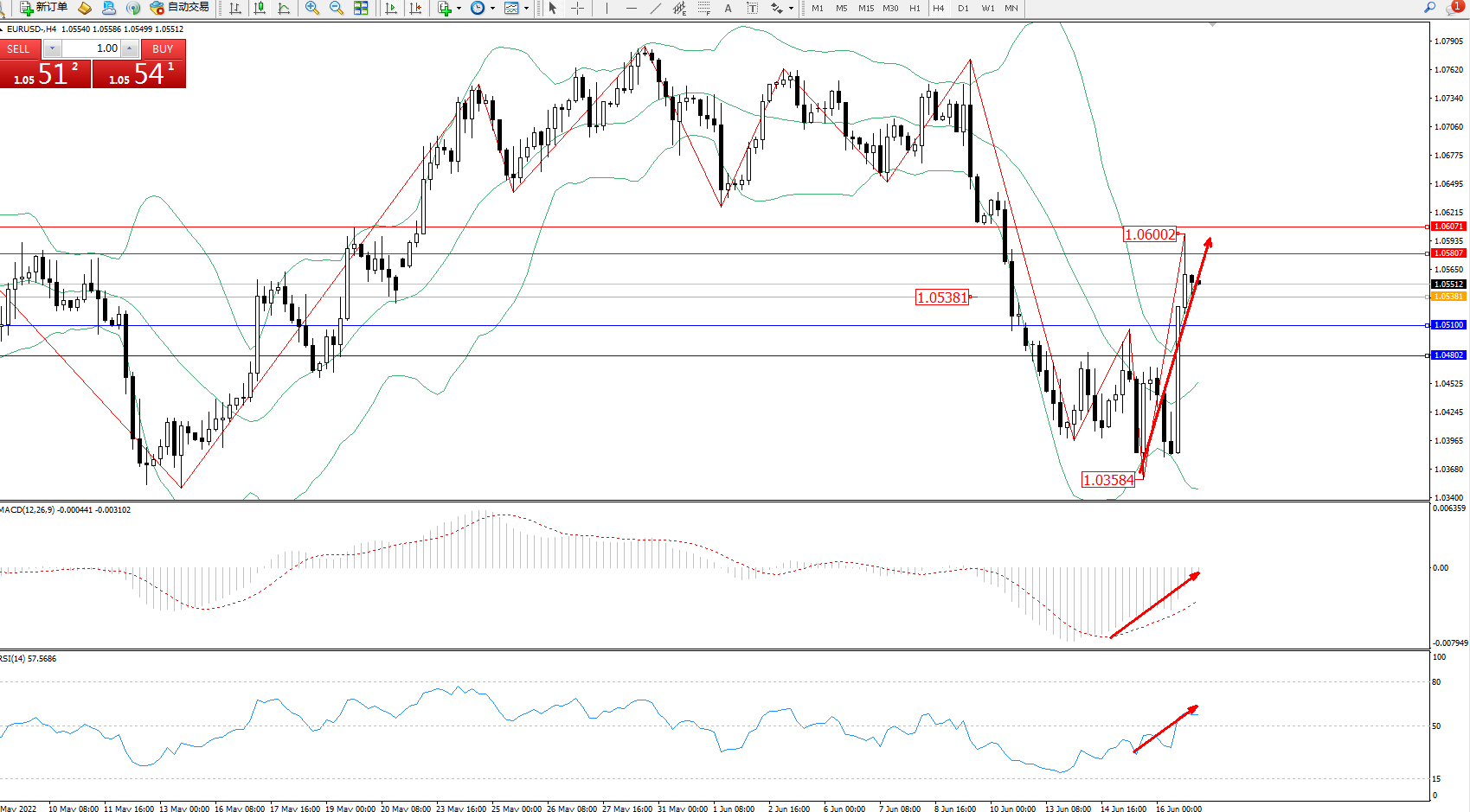 交易策略:在1.05381上方看涨,目标1.05807、1.06071