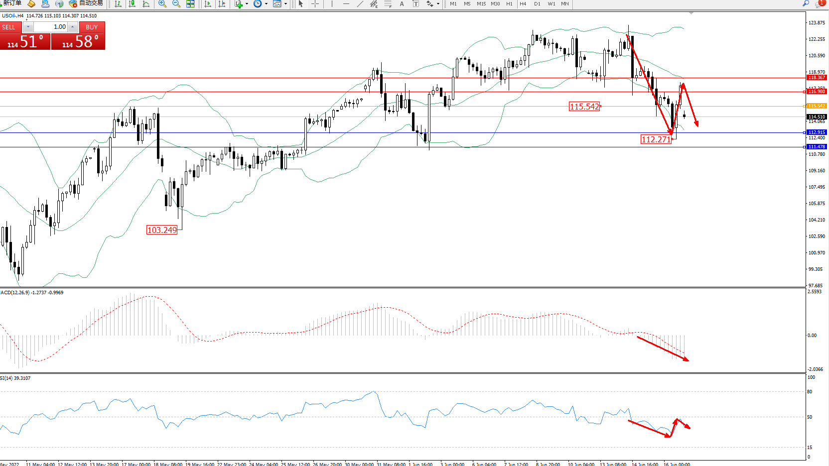 原油USOil——4小时K线图显示: