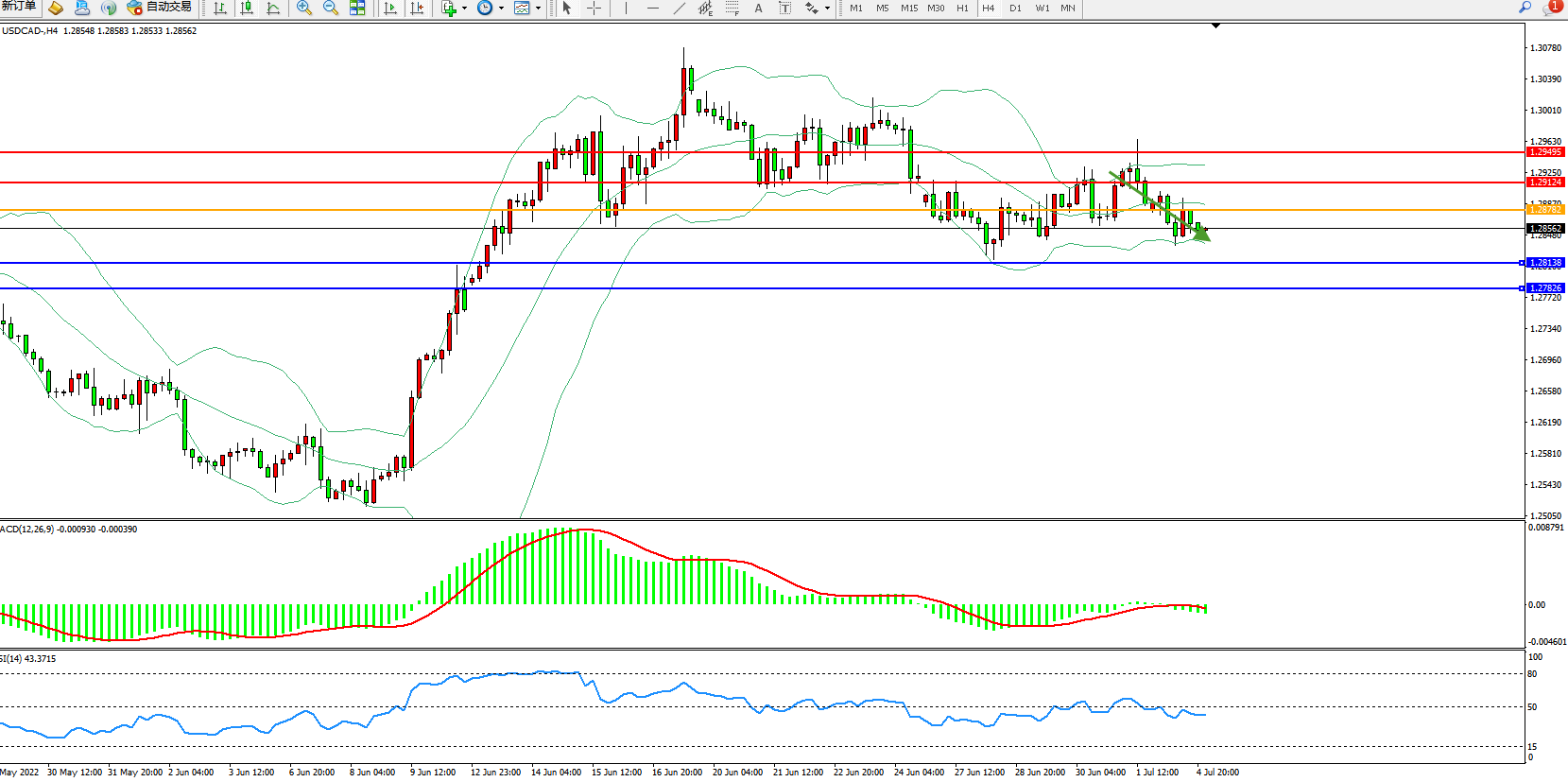 美元加元USDCAD——4小时K线图显示: