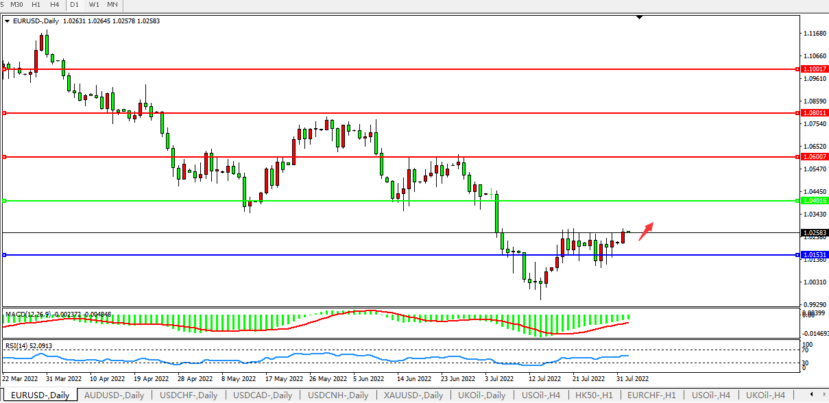 欧元兑美元收涨0.31%,报1.0258。但是,欧元区经济增速放缓和天然气危机仍是欧元的潜在威胁。