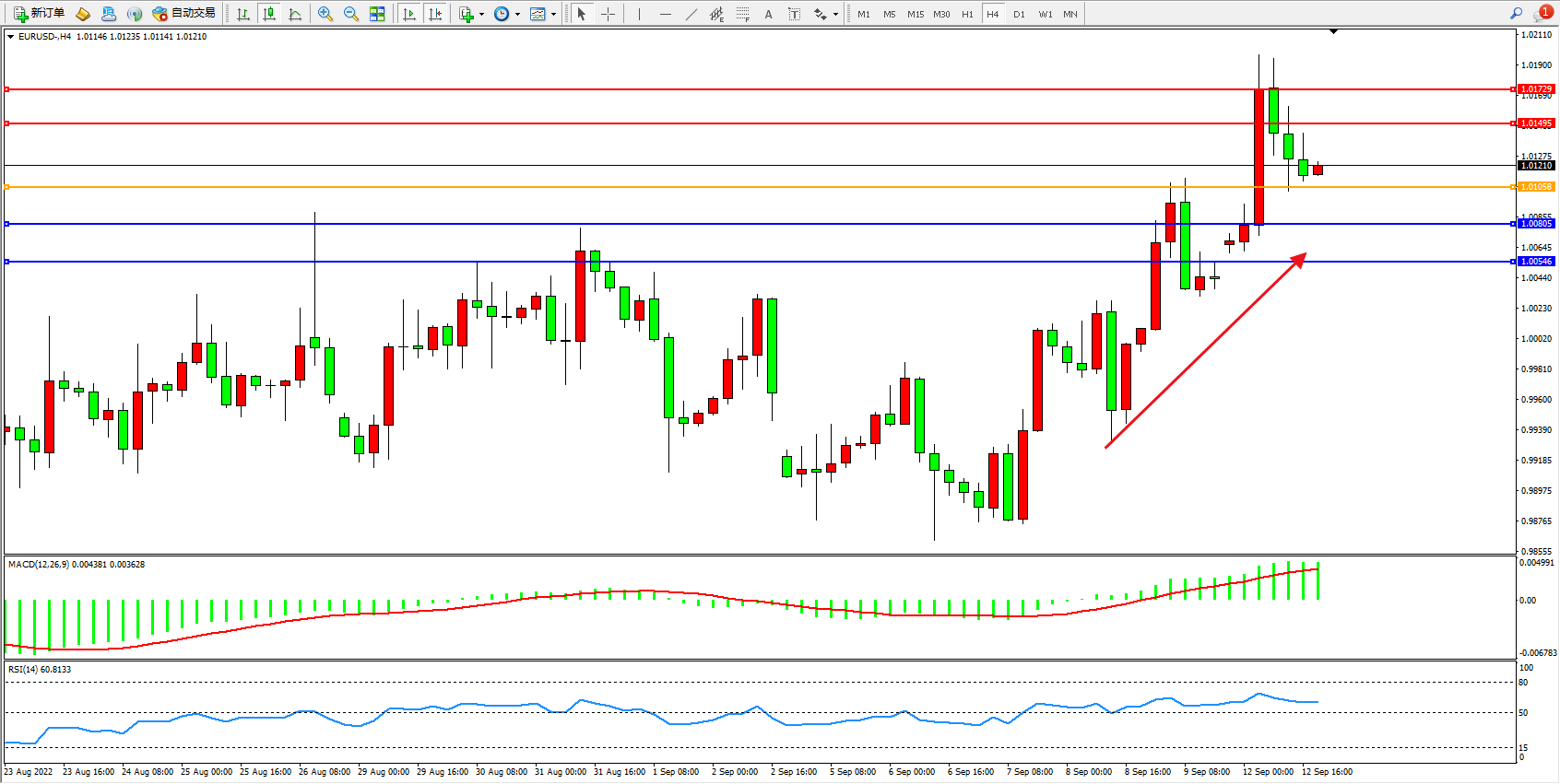 交易策略:1.01058上方看涨,目标1.01595、1.01729