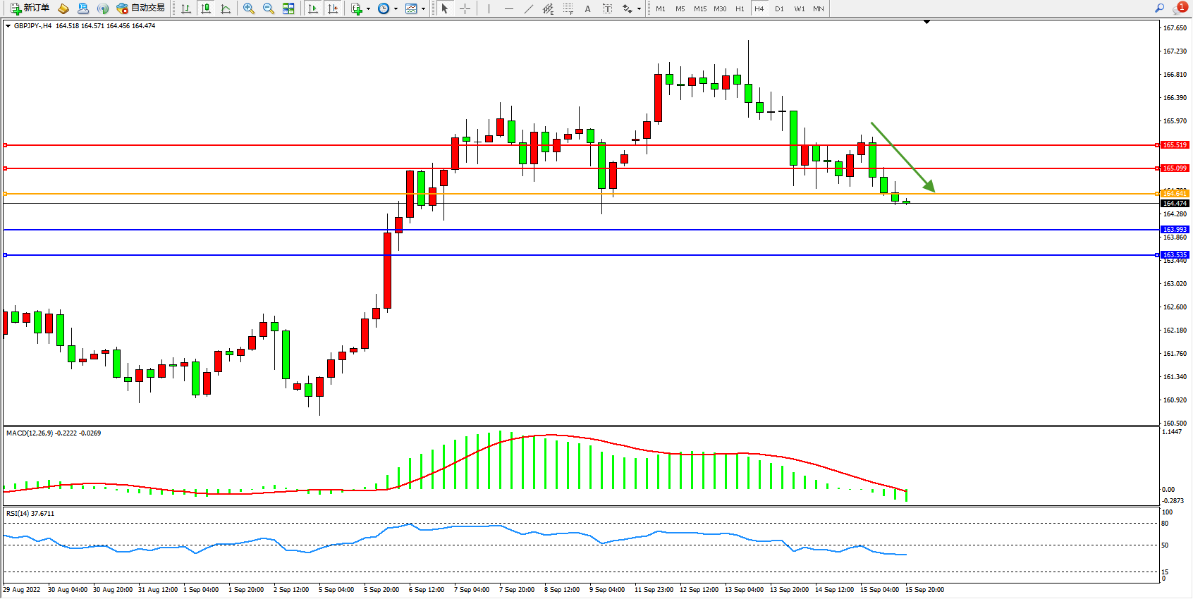 备选策略:143.298下方看跌,目标142.796、142.285