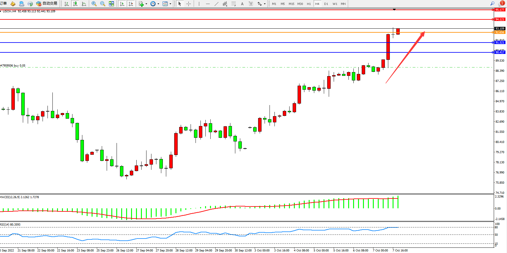 原油USOil——4小时K线图显示: