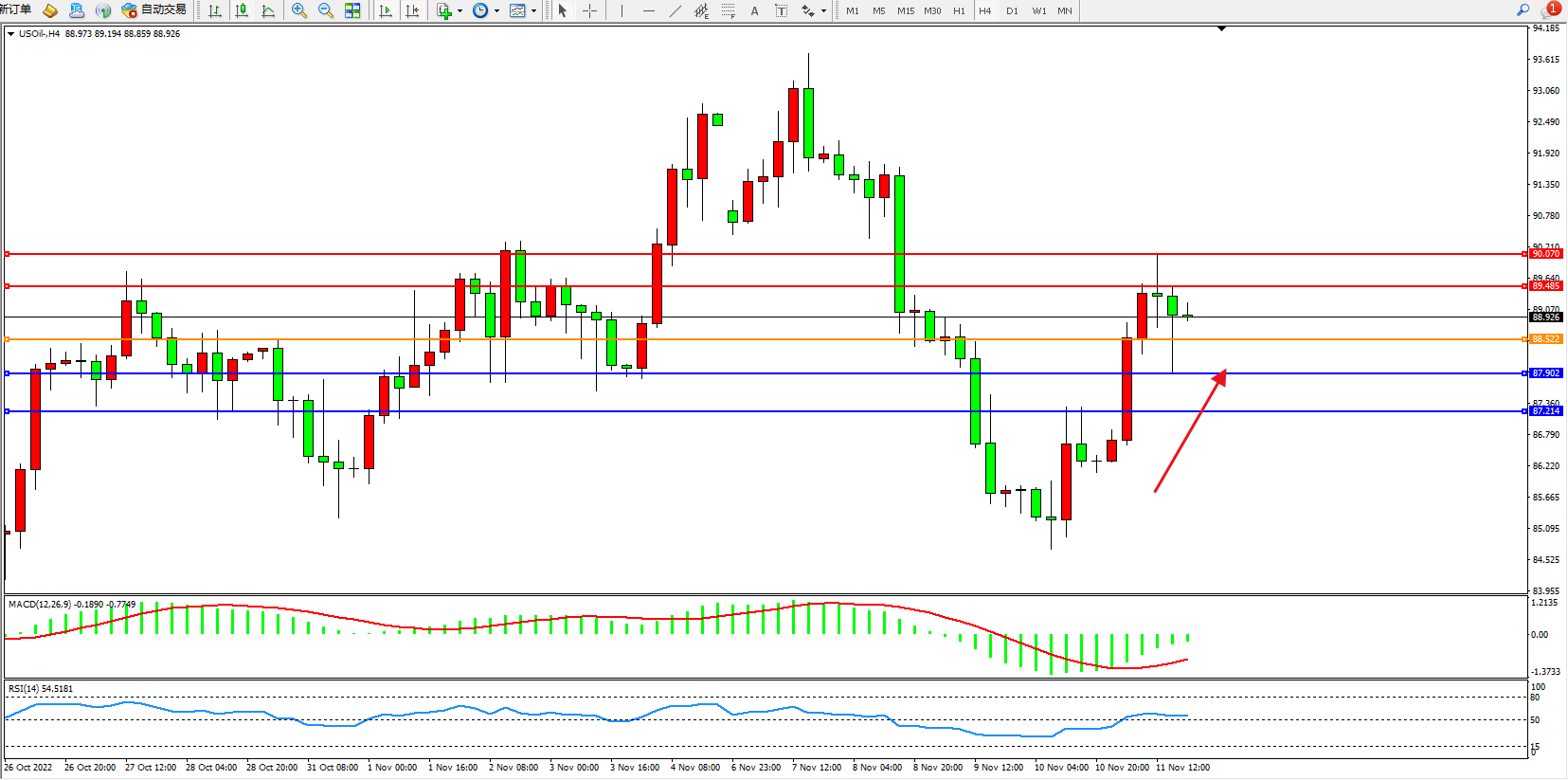 原油维持88.926附近震荡,低于预期的通胀数据给包括石油市场在内的市场注入了信心,认为美联储可能有理由放弃近几个月的大幅加息,可能放缓的加息步伐可能会重振经济增长和石油需求增长。