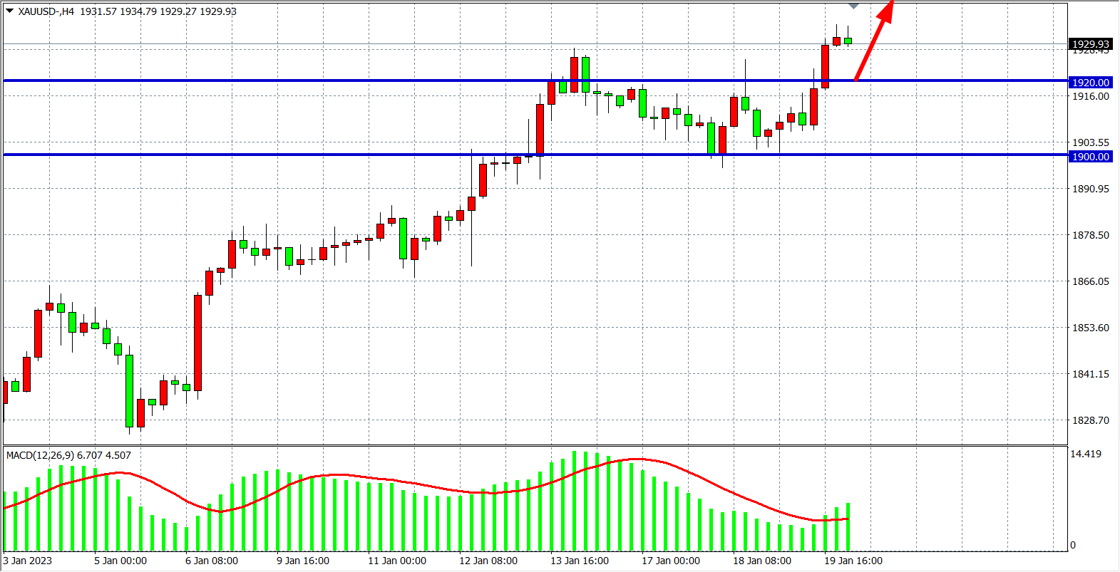 交易策略:在1920.00 之上看涨,目标1930.00 1950.00