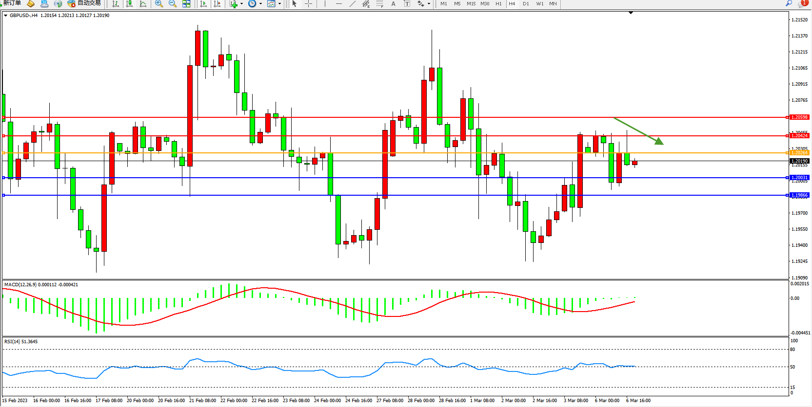备选策略:1.20254上方看涨,目标1.20424  1.23598