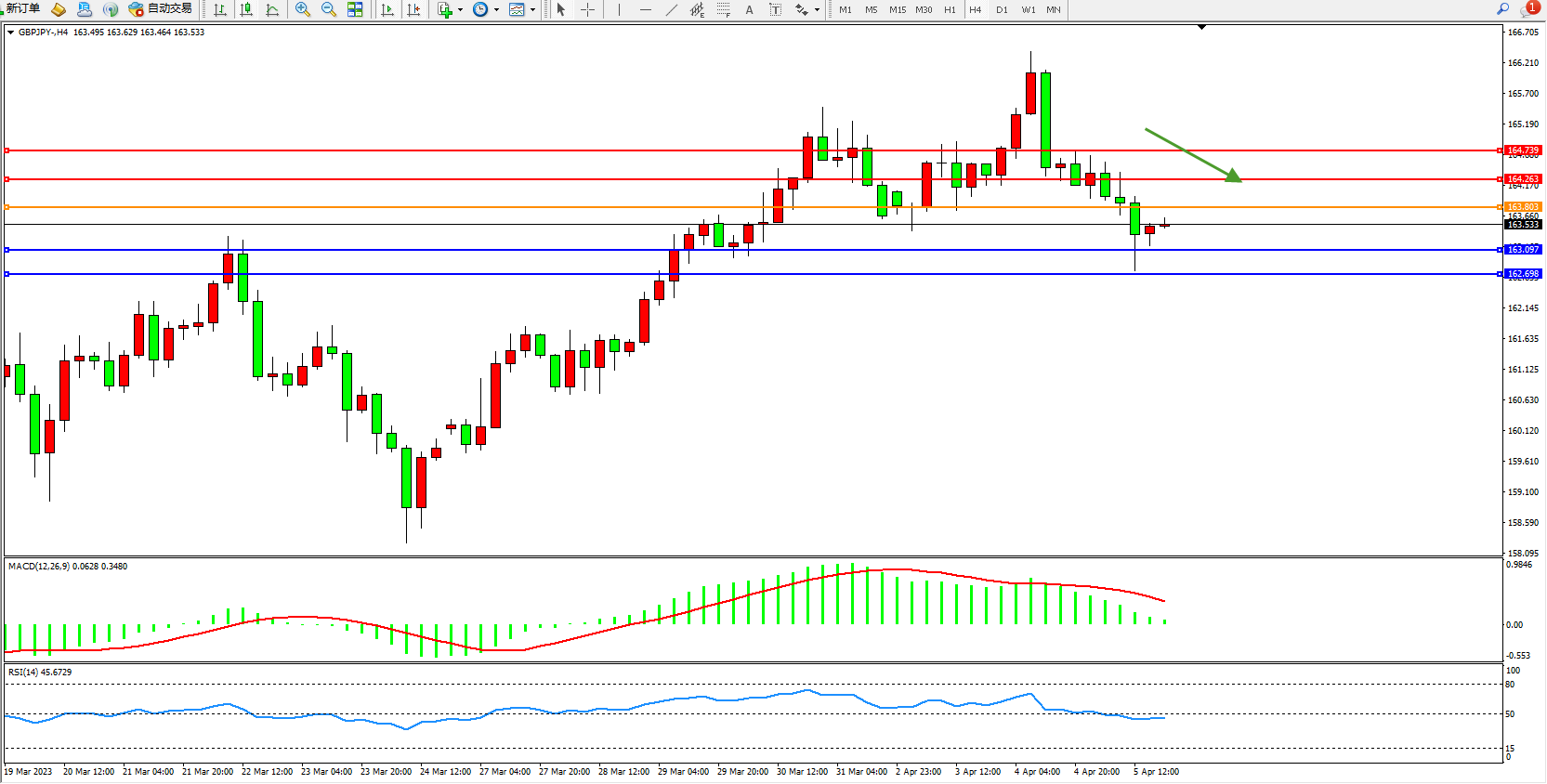 交易策略:163.803下方看跌,目标163.097 162.698